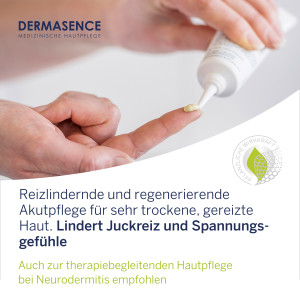 Die DERMASENCE Vitop forte Rescue Pflegecreme ist die ideale Akutpflege für sehr trockene, gereizte Haut. Die Pflegecreme beugt dank des einzigartigen Vitop-Komplexes und Panthenol Entzündungszeichen vor und lindert Juckreiz und Spannungsgefühle. Mit essentiellen Ceramiden und hautverwandten Lipiden stärkt sie die Hautbarriere und spendet intensive Feuchtigkeit durch Glycerin und Hyaluron. Die Creme hilft auch akuten Trockenheitsphasen vorzubeugen und ist empfohlen zur therapiebegleitenden Hautpflege bei Neurodermitis. Dank ihrer praktischen Tube ist sie immer zur Hand, wenn die Haut Hilfe braucht. Ein Naturprodukt, daher können Farbveränderungen möglich sein. Die Pflegecreme ist parfümfrei und dermatologisch getestet.
