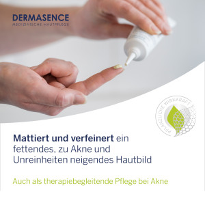 Pflegetipp: Als ergänzende Nachtpflege eignet sich DERMASENCE Seborra Hautklärendes Serum und bei ersten Anzeichen von Pickeln der DERMASENCE Seborra Pickel-Akutroller.