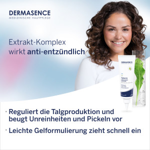 Die DERMASENCE Seborra Beruhigende Gelcreme wurde speziell für fettende, zu Akne neigende Haut entwickelt. Die Gelcreme wirkt hautbilderneuernd und porenverfeinernd. Mit einem anti-entzündlichen Extrakt-Komplex beruhigt und mattiert sie die Haut sofort und reduziert langfristig das Erscheinungsbild von vergrößerten Poren und Unreinheiten. Die Creme reguliert die Talgproduktion, beugt Pickeln und Unreinheiten vor und reduziert dank Niacinamid das Auftreten von Pickelmalen. Die leichte Gelformulierung zieht schnell ein und ist eine perfekte Make-up-Grundlage. Dermatologisch getestet, bietet diese Gelcreme eine wirksame Lösung für eine glattere, klarere Haut.