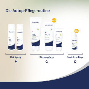 Pflegetipp: Zur sanften Reinigung DERMASENCE Adtop Wasch- und Duschlotion und zur Pflege extrem trockener Gesichtshaut DERMASENCE Adtop XC Lipidcreme verwenden.